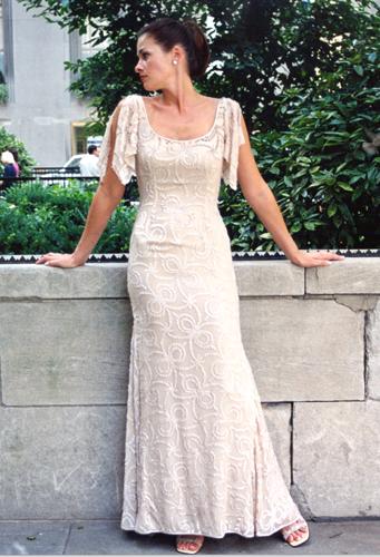 Recognizing the need to fulfill every woman's desire to participate in the look and fit that would achieve the perception she wishes to convey, Peggy Jennings provides an infinite variety of options.  Individually made gowns tailored to your desires, every detail is available in hundreds of color choices in laces , silk satin, cashmere and more all silk lined and meticulously hand finished.